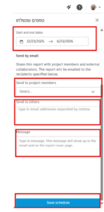 ניתן לשלוח את הדוח גם לאנשים שלא חברים בפרויקט – Send to others