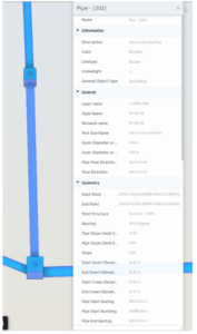 1. בדוגמא הבאה נבחר צינור ניקוז שתוכנן בCivil 3D: