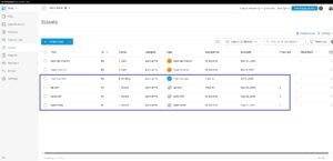 נחזור למסך ה Issues, ניצור Issue לכל משימה נשייך אחראי לטיפול ותאריך יעד. ראה ריכוז המשימות שנוצרו בטבלת שליטה. ניתן לבנות את הטבלה הזו איך שרוצים