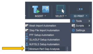 בניגוד לפקודת Measure שאיתה ניתן למדוד מרחק בין צמד חלקים, כאן הפקודה תחשב את המרחק המינימלי בין כל החלקים הקיימים בקובץ.