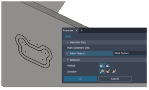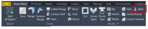 תוכנת Autodesk Inventor בעל אפשרות תכנון חלקי כיפוף פח, Sheet Metal. לרוב על חלקים אילו אנו מבצעים חריטה, חיתוך בלייזר על גבי הפח. פקודת Mark היא פקודה ייעודית לתהליך זה. הפקודה נמצאת ב – Panel מסוג Modify: