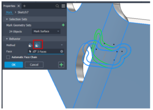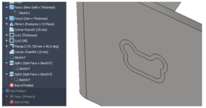 אך איתה היינו צריך לבחור פעמיים את הסקיצה. פקודת Mark יכולה לעזור לנו במצב כזה שיש לנו Offset בסקיצה ולחסוך Feature. אם הסקיצה שלנו צריכה לעטוף כיפוף של פח, נשתמש באפשרות Wrap: