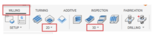 1. עיבוד 3+2, כאן ממקמים את המוצר מרחבית, תוך סיבוב של ציר אחד או שניים, ולאחר מיקום זה נבצע עבודה דו או תלת מימדית, כלומר תנועת כלי בצירים ליניאריים בלבד וזאת תוך שימוש בכל אופציות כירסום 2D & 3D הקיימות בתוכנה: