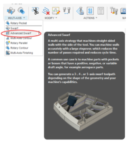 2.3 Advanced Swarf – משמש לעיבוד סימולטני של משטחים כולל שילוב של Under Cut, תוך שימוש בצד הכרסום, למשל חלקי מבנה תעופתי.