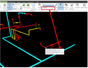 בדוגמה מטה ה Quick Properties מציגים  מידע אודות ELBOWS ב PLANT 3D