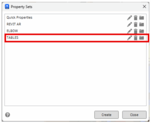 כשנרצה לקבל תכונות שהגדרנו עבור שולחנות ב  REVIT   נבחר את ה Property Set המתאים שיצרנו