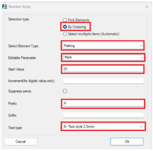 נלחץ על הפקודה ב- Environment בשם Number Array נפתח חלון הגדרות למספור אלמנטים.