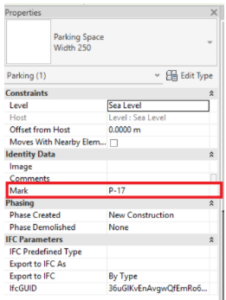 נבחר את אחת החניות ונראה בנתוני החניה שהפרמטר Mark קיבל מספר עם טקסט קבוע