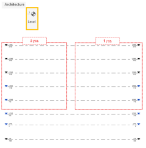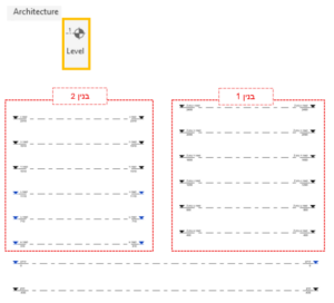 אפשרות זאת היא האפשרות המורכבת יותר, שכן לאחר יצירת הבניינים ובחירת המפלסים, נוצרות תכניות שטחים זהות לשני הבניינים – דבר אשר יגרור כפילות שטחים בתכניות השונות. אציג כיצד לפתור מצב זה מטה (ניתן גם להיעזר בסרטון ההסבר).