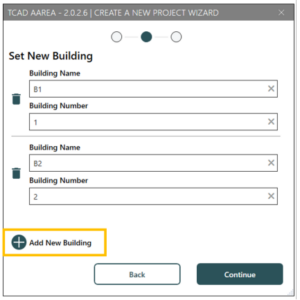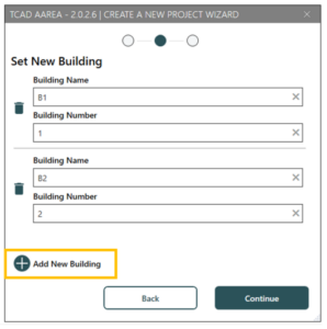 בחלון הבא ניצור מספר מבנים לפי הצורך באמצעות Add New Building ונאשר ב Continue.