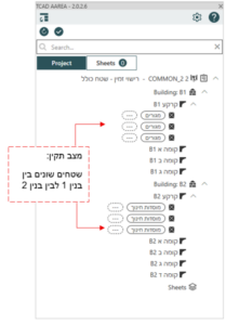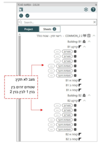 באופן זה כל תכניות השטחים נוצרות באופן נפרד לפי בניינים ואין מצב של חפיפת שטחים בין המבנים.