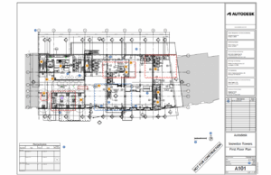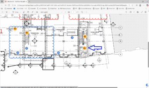 שימו לב בדוגמא לסימוני הערות (Issues) ועננים על גבי התוכנית שסומנו כחלק מבקרה על התכנון