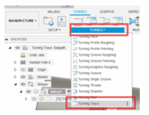 במודול ה Manufacture , נבחר פעולה מסוג Turning Trace :