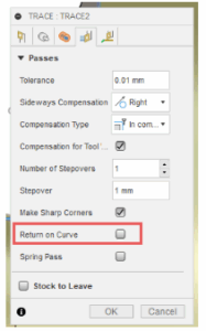 לתשומת לבכם, קיימת כאן אופציה שימושית לגאומטריות מורכבות המאפשרת חזרה לאחור על מסלול הכלי כדי לסייע ולמנוע פגיעה במוצר- Return on Curve: