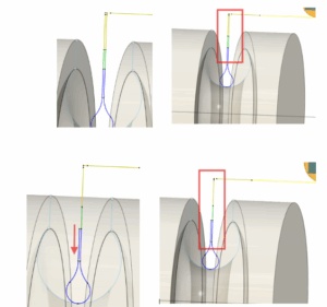 פעולה זו מאפשרת לנו לבצע מהלכי כלי מורכבים תוך שימוש בגאומטריית המודל או שימוש ב- Sketch.
